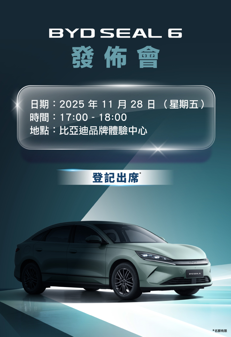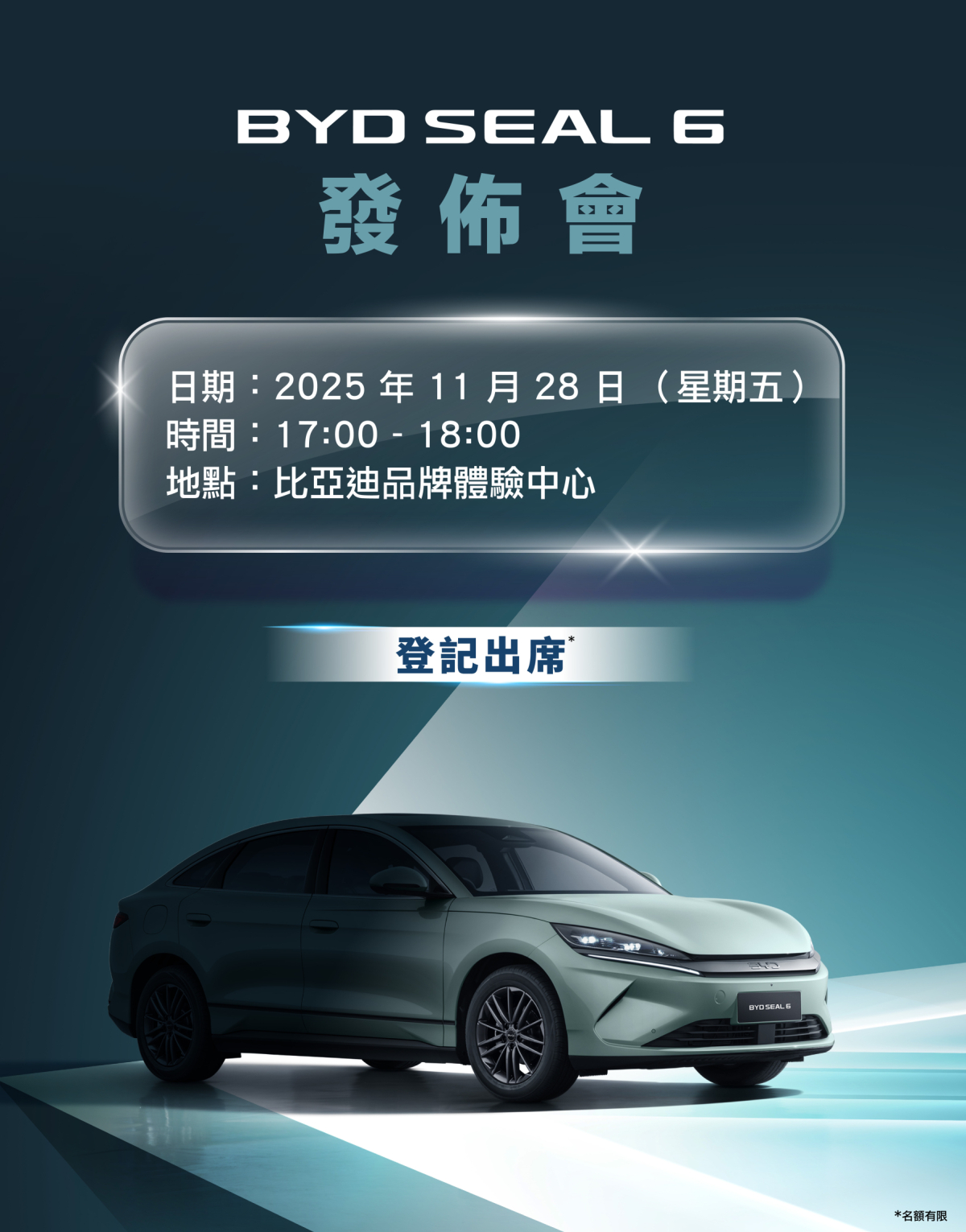 預留優惠 : https://bit.ly/2025_1003_BYDmid-autumn-reward 🔥 全城熱搶|BYD SEALION 7 (Standard) 連環賞折扣後 $218,000 發售🎁 三重鉅賞 限時解鎖1️⃣ 中秋國慶特別賞:立減 $10,0002️⃣ 週年紀念賞:再減 $20,0003️⃣ 財務輕鬆賞:5年低息分期^ 💎 頂級型號同步優惠 l BYD SEALION 7 (Premium) 及 BYD SEALION 7 (Performance – AWD) ✨ 專享低分期利率1.98%^ ✨ 最長還款期 5 年 🏆冠軍從不偶然,實力鑄就口碑🏆 ✅頂尖安全守護:榮獲 EURO NCAP 權威五星安全認證,守護每段旅程。 ✅ 核心電池科技:配備比亞迪獨家刀片電池與 CTB 電池車身一體化技術,安全與效能兼備。 ✅ 無憂售後保障:尊享電芯終身保修及大灣區聯保服務,讓您暢行無憂。 【讓實力,成就您的冠軍之選】預留優惠 : https://bit.ly/2025_1003_BYDmid-autumn-reward 我們堅守以客為先,務求為大家帶來最優質、最放心的購車體驗!歡迎親臨感受和諧汽車專業細緻的服務,享受與別不同的獨有購車體驗。 *資料來源:香港運輸署 (資料統計時間為:2025 年 1 月 1 至 7 月 31 日) **只適用於指定型號及指定顏色或其指定年期分期貸款。享受此優惠需同時購買指定保險 ^只限指定型號及或其指定年期分期貸款,優惠受條款及細則約束,詳情請向銷售顧問聯絡。指定合作金融機構保留審批貸款申請的最終權利和決定。實際最終供款詳情請與我們查詢。受 優惠受條款及細則約束,詳情請向銷售顧問查詢。