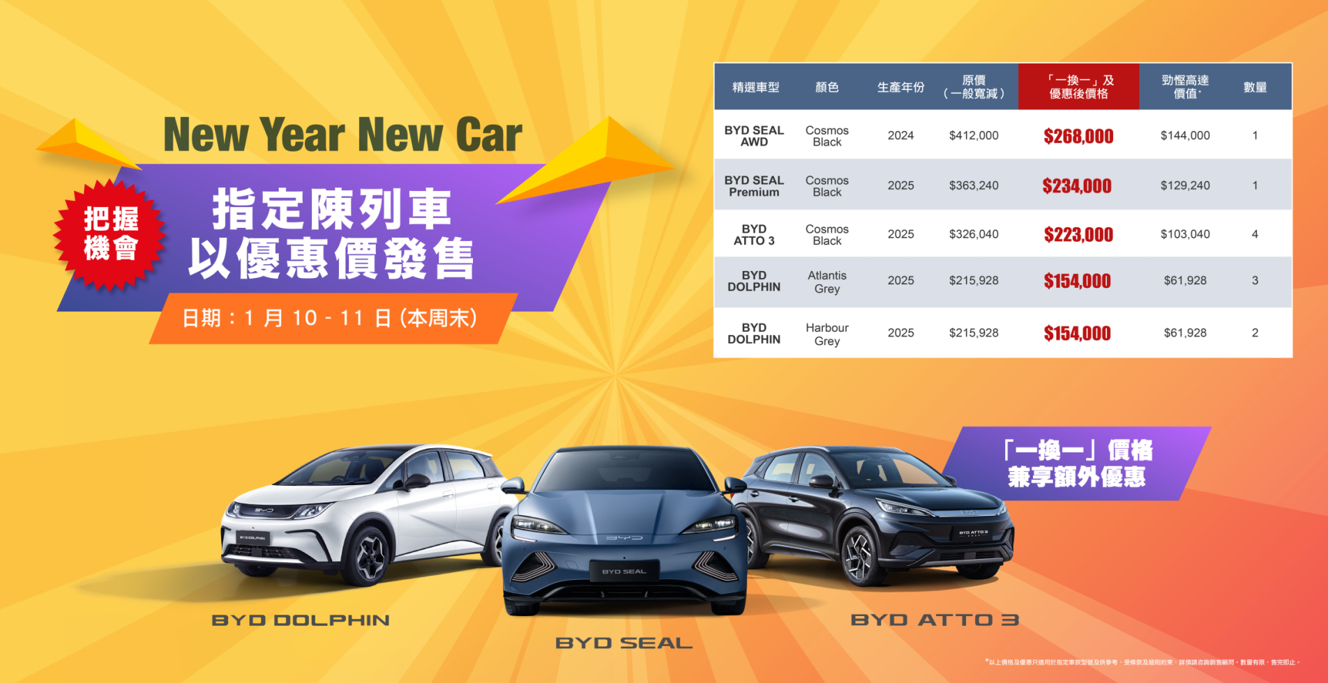 【比亞迪 x 和諧汽車】2025 年1 – 6 月香港全品牌新車登記量 No.1BYD 締造歷史,2025年上半年香港全品牌新車登記量銷量冠軍!感謝每一位香港比亞迪車主的信賴!比亞迪 在 2025 年 1 – 6 月榮獲香港全品牌新車登記量 No.1,持續引領新能源出行新潮流!歡迎親臨感受和諧汽車專業細緻的服務,享受與別不同的獨有購車體驗我們堅守以客為先,務求為大家帶來最優質、最放心的購車體驗!
