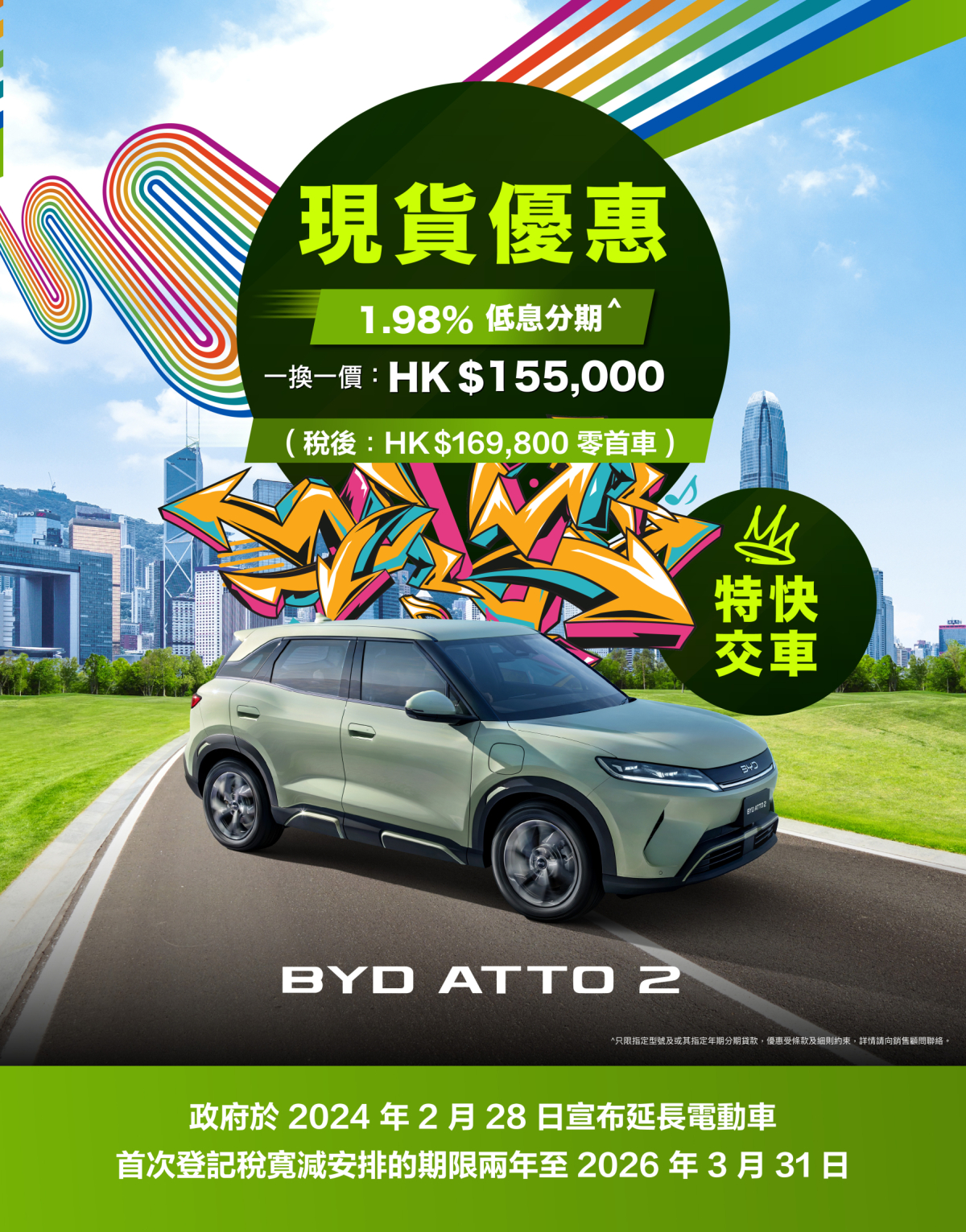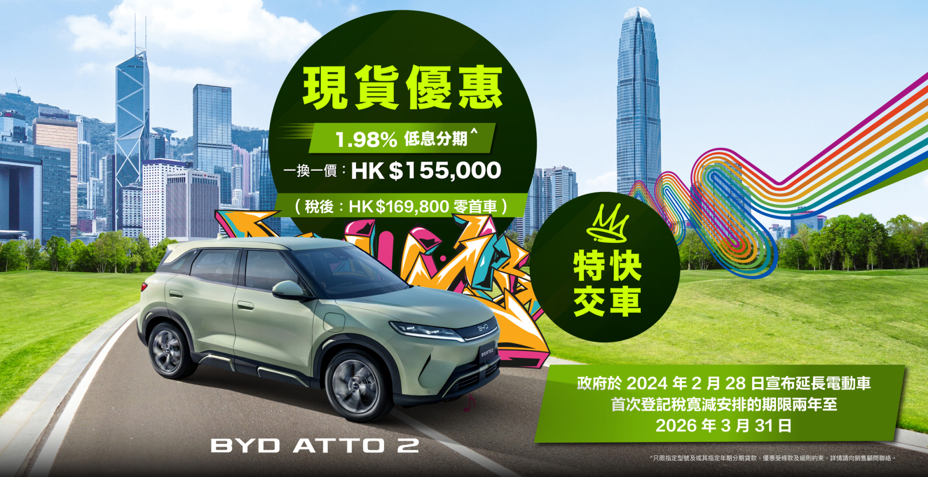 👉 預留優惠:https://bit.ly/2025_1002_BYDmid-autumn 🌕 這個中秋,我們為您準備了「買車 + 掃貨」雙重狂歡 🎊 比亞迪 X 和諧汽車 將於 10 月 4 - 5 日(星期六及日) 分別於 荃灣4S店 及 九龍灣陳列室 舉辦中秋限定鉅獻!📢當日購車尊享限定禮遇及參加「掃貨大激賞」,於限時任掃一架購物車的禮品🛒,數量有限,萬勿錯過,立即登記,只限本週末! ✅ 全系列車型:「掃貨大激賞」- 買車即獲資格,推滿一架購物車的禮品帶回家! ✅BYD SEALION 7 (Standard) 現金回贈:立減高達 $30,000^ ✅BYD SEALION 7:最高 5 年低息分期*^ ✅BYD SEAL / BYD DOLPHIN:尊享 0 息分期*^ 📅 活動僅限2天,錯過不再! 日期:10 月 4 - 5 日 (本週末) 地點:比亞迪荃灣 4S 店 及 比亞迪九龍灣陳列室 🔥 立即行動,搶佔名額! 👉 預留優惠:https://bit.ly/2025_1002_BYDmid-autumn ^優惠受條款及細則約束,詳情請向銷售顧問聯絡。 *1.只適用於指定型號或其指定年期分期貸款。 2.分期貸款之金額只限於「一換一」計劃之價格。優惠適用於 2025年 9 月 1 - 30 日之指定型號訂單。所有分期貸款須經指定合作金融機構作電動車貸款,而貸款額不超過車價 80 %,並須繳付 20 %「首期」。「首期」並不包括其他新車登記的費用如保險、出牌及手續費等。指定合作金融機構保留審批貸款申請的最終權利和決定。實際最終售價及供款詳情請與我們查詢。受條款及細則約束。名額數量有限,先到先得。