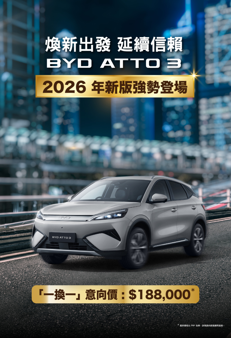心思思入手或想了解更多 BYD ATTO 2 資訊:https://bit.ly/2025_1225-ATTO2-WEB BYD ATTO 2 之所以能在眾多車型中脫穎而出,全因其破格的「玩味」設計與多元化的車身色彩選擇!這份人氣肯定,源自廣大車主對個性化的追求。BYD ATTO 2 經典的黑灰色,百搭耐看,盡顯都市時尚感;玩味十足的「奶灰綠」、「嘟嘟白」,不僅是視覺上的享受,更是一種生活態度的表達,陪您行出自己的風格。 BYD ATTO 2 💫靈活穿梭,泊車無難度 ▸ 4.3 米車身長度 + 5.25 米超細迴旋半徑,轉彎零壓力! ▸ 配備 360 度全景影像,狹窄車位都話咁易! 💫智能語音,駕馭更自在 ▸ 一句語音控制,安全又便捷。 由駕乘到生活,BYD ATTO 2 與你潮玩城市每一角! 心思思入手或想了解更多 BYD ATTO 2 資訊:https://bit.ly/2025_1225-ATTO2-WEB